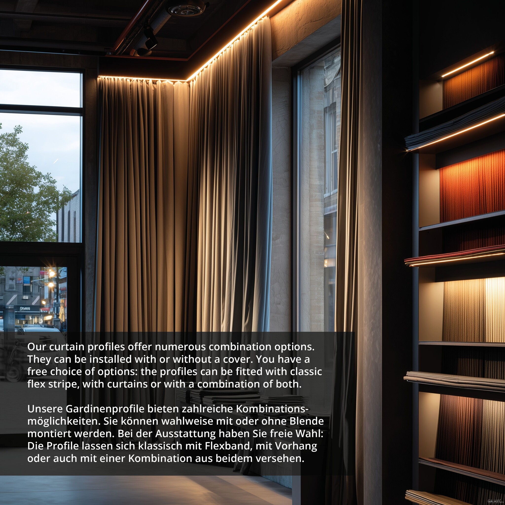 Optioneel leverbaar bij het gordijnrail LED-profiel