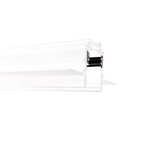 Het TS3-profiel wordt volledig in het gipsplafond weggewerkt, met enkel een strakke lichtopening zichtbaar. Geschikt voor 48V verlichting en verkrijgbaar in wit en zwart.